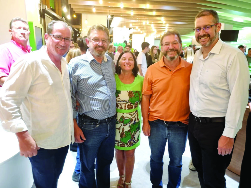 A nova sede da Sicredi Pioneira no Centro de Gramado chama atenção pela imponência. O local que por muitos anos abrigava um posto de combustíveis ganhou um lindo prédio com dois mil metros quadrados, construídos sob medida para a cooperativa. A inauguração foi na segunda-feira à noite em mais uma bela cerimônia da mais antiga cooperativa de crédito da América, completou 120 anos em dezembro passado. Na foto, eu, o presidente do Sindilojas, Guido Thiele e sua esposa Odete, o vice do Sindilojas, Sandro Schmidt e o presidente da Sicredi, Tiago Luiz Schmidt.
