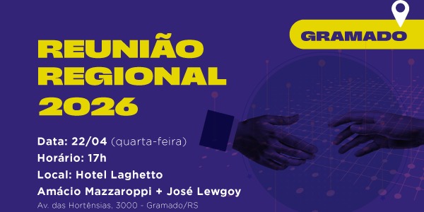 GRAMADO – A primeira Reunião Regional do ano da Fecomércio-RS será realizada nesta quarta-feira (22), em Gramado, no Hotel Laghetto Siena, na sala Amácio Mazzaroppi + José Lewgoy.