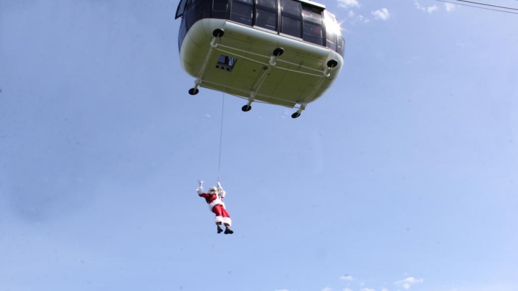 Além de realizar suas descidas diárias no espetáculo “A Fábrica de Sonhos”, que ocorre às 20h e às 21h, na Catedral de Pedra, o Papai Noel do Sonho de Natal começa, neste sábado (27), ao meio-dia, uma viagem pelo Brasil. O ponto de largada para a aventura do Bom Velhinho Radical será a Cascata do Caracol. O Papai Noel e seus ajudantes irão descer de rapel os 131 metros da cascata. O roteiro inclui, ainda, passagens pela roda-gigante de Balneário Camboriú, Hospital da Criança Santo Antônio, em Porto Alegre, e Bondinho Pão de Açúcar, no Rio de Janeiro.
