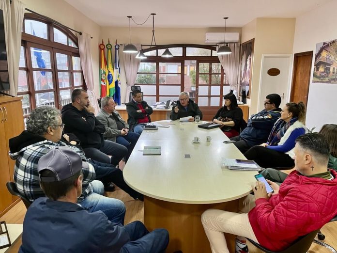 CANELA – A Administração Municipal realizou um ato na tarde de terça-feira (11), no gabinete do prefeito Constantino Orsolin, dentro do Programa Canela Participa, para a anunciar a execução de uma grande obra bastante aguardada pela comunidade do Alpes Verdes. Trata-se da conclusão do anel viário do bairro, que envolve a pavimentação asfáltica dos trechos restantes das ruas Gilda Bolognesi e Dos Pinheiros. Além do chefe do Executivo, a solenidade contou com a presença de secretários municipais, das vereadoras Andresa da Conceição, Carla Reis e do vereador Jone Wulff, e também do presidente da Associação de Moradores do Bairro Alpes Verdes, Gerson Luis Nikue da Silva.