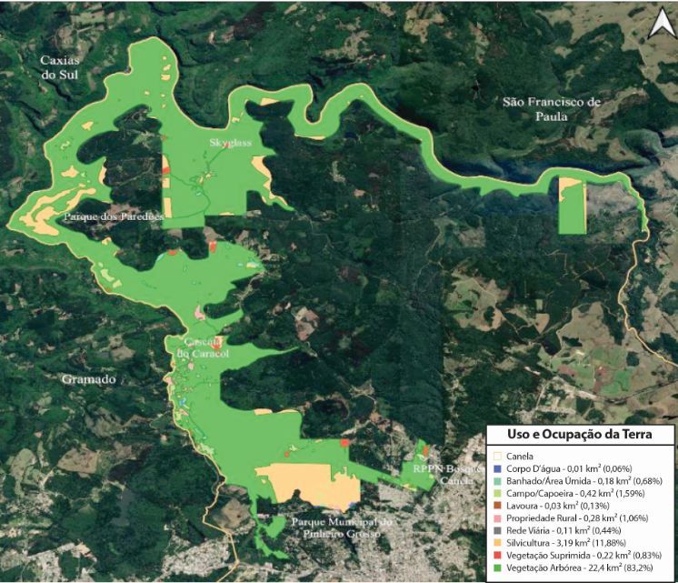 A área demarcada com mais de 22,4 km² de vegetação arbórea corre pela bacia do Rio Caí, fazendo divisa com São Francisco de Paula, Caxias do Sul e Gramado, adentrando aos parques do Caracol, Skyglass, Pinheiro Grosso e dos Paredões.