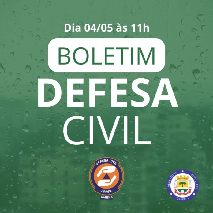 A Defesa Civil de Canela, informou por volta das 11h30 deste sábado (04) às últimas atualizações relacionadas às chuvas.