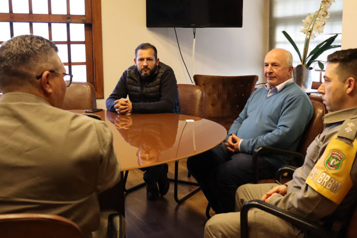 REGIÃO – Na tarde desta quinta-feira (5), membros do Batalhão Rodoviário da Brigada Militar (BRBM) realizaram uma visita ao prédio administrativo para conversar com o prefeito em exercício, Luia Barbacovi, e com o secretário de Trânsito e Mobilidade Urbana, Tiago Procópio. Na ocasião eles discutiram as ações de conscientização que serão realizadas por ocasião do Maio Amarelo.