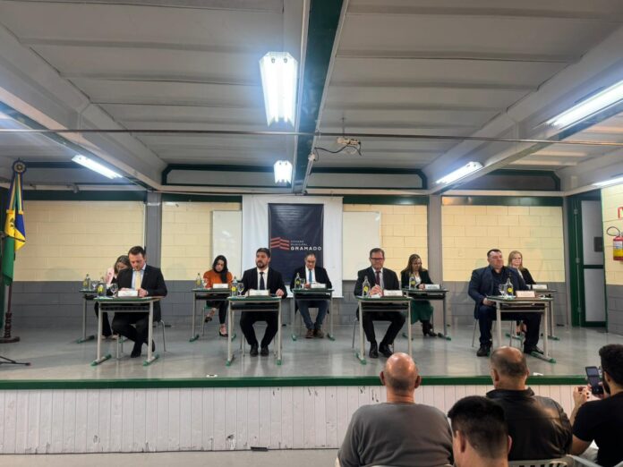 GRAMADO – Na noite desta segunda-feira, dia 13, a Câmara Municipal de Gramado realizou mais uma Sessão Descentralizada, desta vez no auditório da Escola Municipal Dr. Carlos Nelz – CAIC, em homenagem ao Dia dos Professores. Durante a sessão, foram aprovados por unanimidade um Projeto de Lei Ordinária (PLO) de autoria do Executivo e dois Projetos de Decreto Legislativos (PDL) de autoria parlamentar.