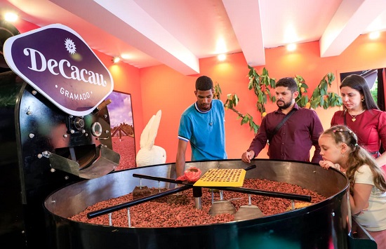 Diariamente, das 11h às 22h, profissionais vindos diretamente da Bahia mostram a jornada do cacau no Mundo “De Cacau à Origem”, que está instalado na praça Major Nicoletti. Os técnicos em agropecuária Cleiton Souza Santos e Rafael da Silva Dias, de Ilhéus, são os responsáveis por passar as instruções aos visitantes.