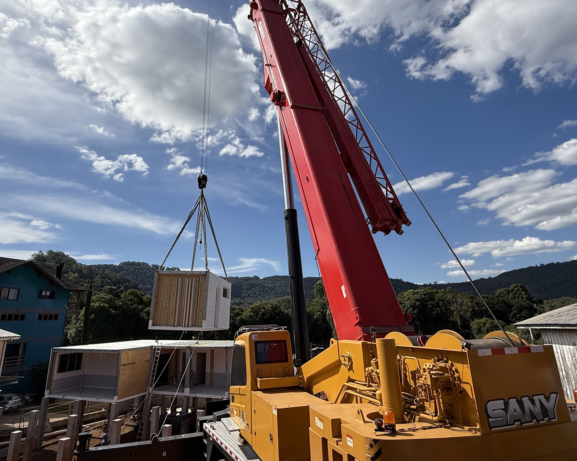 GRAMADO – A instalação dos módulos da Escola Municipal de Educação Infantil Raio de Sol já começou na Vila do Sol. Com mais de 1.100 metros quadrados, o novo espaço contará com 11 salas de aula distribuídas em três pavimentos, onde cada ambiente foi cuidadosamente planejado para estimular a criatividade, o aprendizado e garantir a segurança dos pequenos. Além das salas, o projeto inclui fraldários, cozinha, depósitos, banheiros, biblioteca, área de serviço e estacionamento.