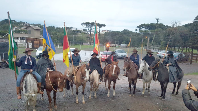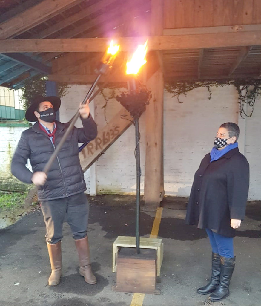 GRAMADO – Na tarde desta terça-feira (7), o CTG Manotaço deu início oficial às celebrações alusivas à Semana Farroupilha 2021. Neste ano, o CTG reproduziu o formato do acendimento da primeira chama crioula, ocorrida em 1947 quando oito cavalarianos, liderados por Paixão Côrtes, colheram uma centelha do Fogo Simbólico da Pátria para fazer a primeira Ronda Crioula da história.
