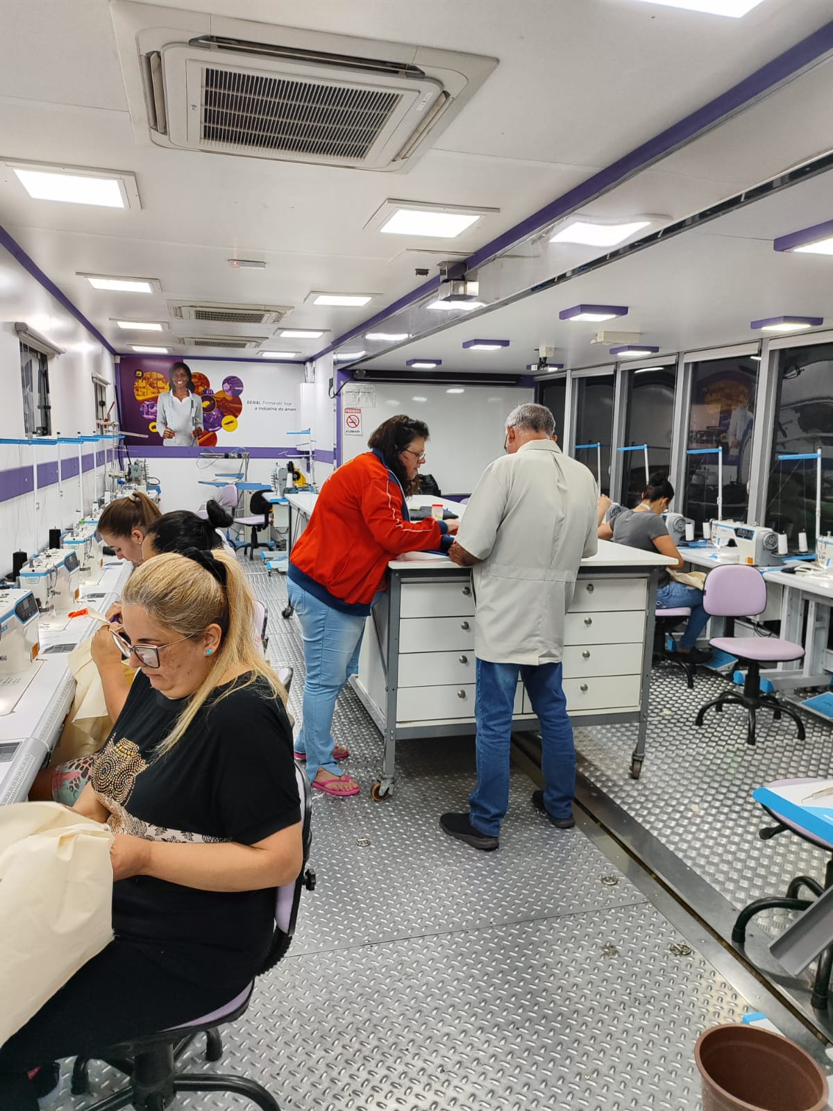 Com início no dia 1º de outubro e previsão de encerramento em 29 de outubro, o curso tem atraído uma diversidade de participantes, todos buscando qualificação profissional em um setor de alta demanda. Ao todo, 24 alunos estão distribuídos em duas turmas, nos turnos da tarde e noite, com até 12 alunos em cada turma. As aulas ocorrem de segunda a sexta-feira, das 13h às 17h e das 18h às 22h, dentro de uma unidade móvel do Senai, equipada com máquinas de costura industrial, permitindo aos participantes uma experiência prática de aprendizado.