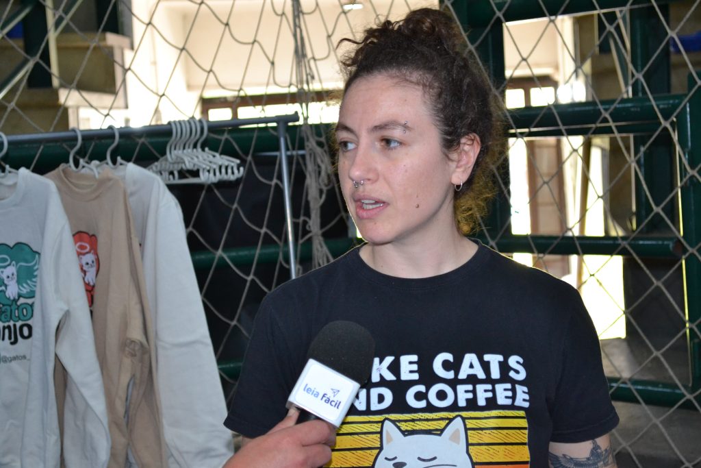 Um dos destaques do evento, o estande da ONG Gatos Anjos, mantida exclusivamente por voluntários. Representando o grupo, Aline Michel explicou a importância do apoio da comunidade. “A gente depende totalmente das doações para resgatar animais em situação de rua, custear tratamentos, castrações e encontrar lares temporários ou definitivos. Como não temos um espaço próprio, usamos nossos próprios lares para acolher os felinos até que consigam uma família”. A ONG também comercializa livros, canecas e moletons personalizados para arrecadar recursos.
