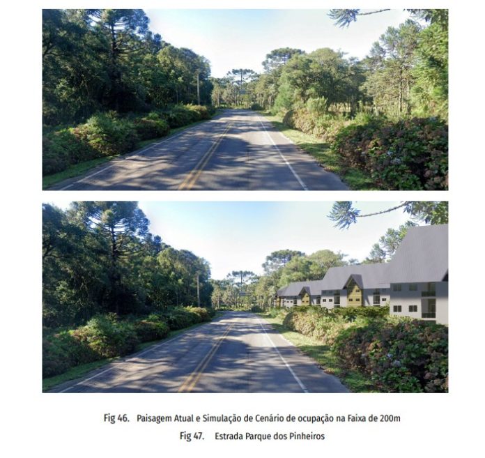 Tal expansão indica potencial conflito com os objetivos do Plano de conferir protagonismo à massa vegetada. A paisagem natural nos bordos da via ficará limitada, dado que as construções poderão obstruir a visualização da vegetação à esquerda da estrada, caracterizada como Área de Interesse Ambiental e Paisagístico.