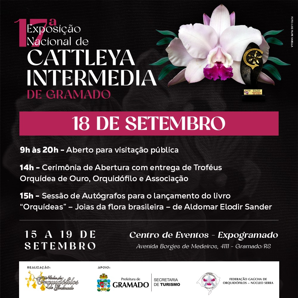 GRAMADO – A 17ª Exposição Nacional de Cattleya Intermedia começa nesta quarta-feira (15). O evento, que é aberto ao público, ocorre anualmente e recebe expositores de diversos lugares da região.