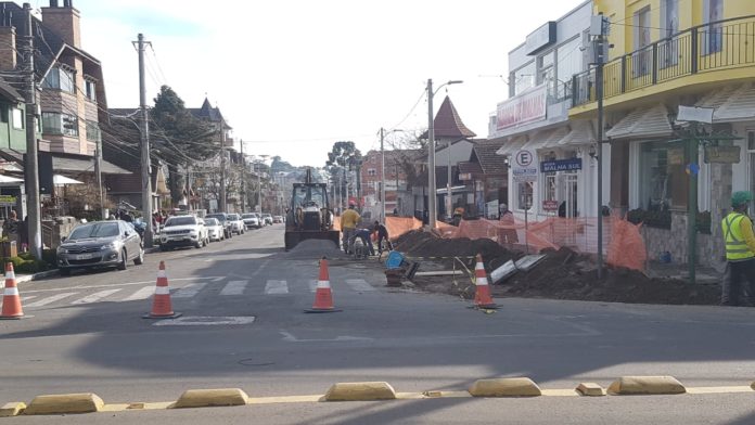 CANELA – As obras de revitalização da rua Felisberto Soares entre a Dona Carlinda e a Borges de Medeiros estão sendo executadas. Neste trecho, a Prefeitura vai alargar as calçadas, transformando-as em calçadões e retirar todas as vagas de estacionamento dos dois lados. No mesmo trecho serão construídos cinco espaços de convivência com bancos. A reformulação deve estar concluída até o final do ano.