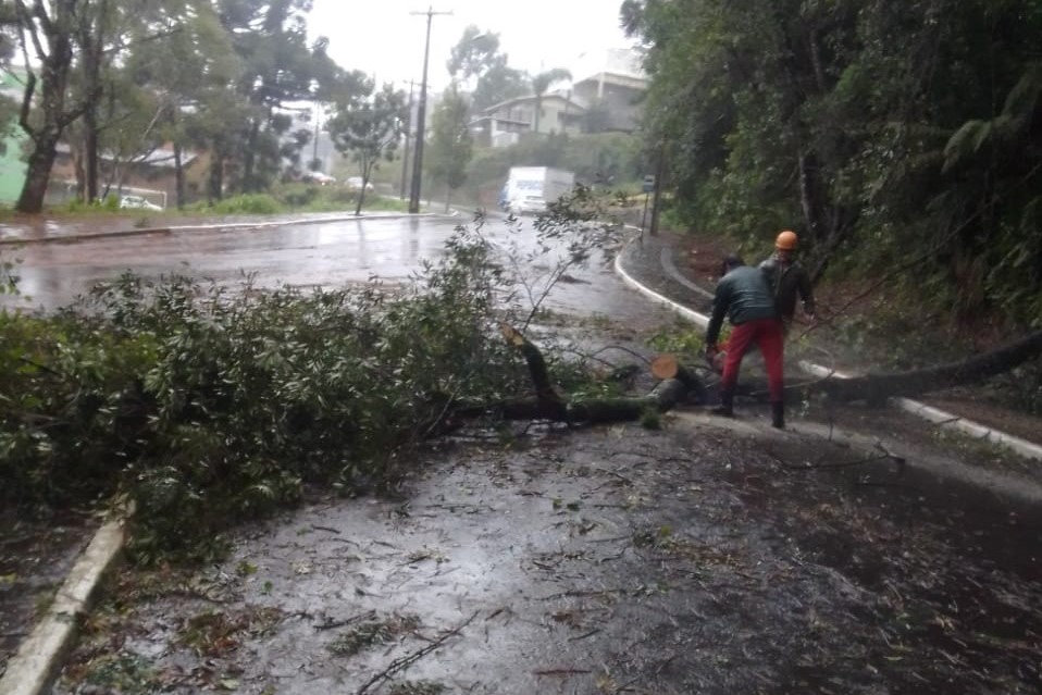 GRAMADO – Diversas áreas da Prefeitura de Gramado estão atuando para conter os danos causados pela chuva intensa e ventos fortes que atingiram o município entre esta quarta (12) e quinta-feira (13). A equipe de arborização da Secretaria do Meio Ambiente atendeu, até o momento, cinco chamados de árvores que caíram e bloquearam vias no bairro Piratini, bairro Planalto Linha Marcondes, Linha São Roque.