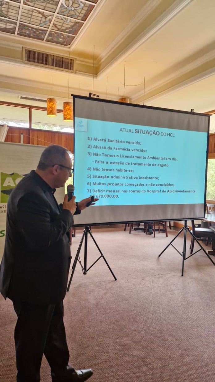 CANELA – A situação do Hospital de Caridade de Canela (HCC), foi tema de uma reunião-almoço na quarta-feira (11), realizada pela Associação Comercial e Industrial de Canela (ACIC). Durante o encontro, no Tri Hotel, o interventor do hospital que assumiu há 45 dias, Cezar Chavez, apresentou um diagnóstico da instituição e afirmou que a regularização do alvará sanitário é hoje o principal passo para que o hospital possa ampliar atendimentos e melhorar sua situação financeira.