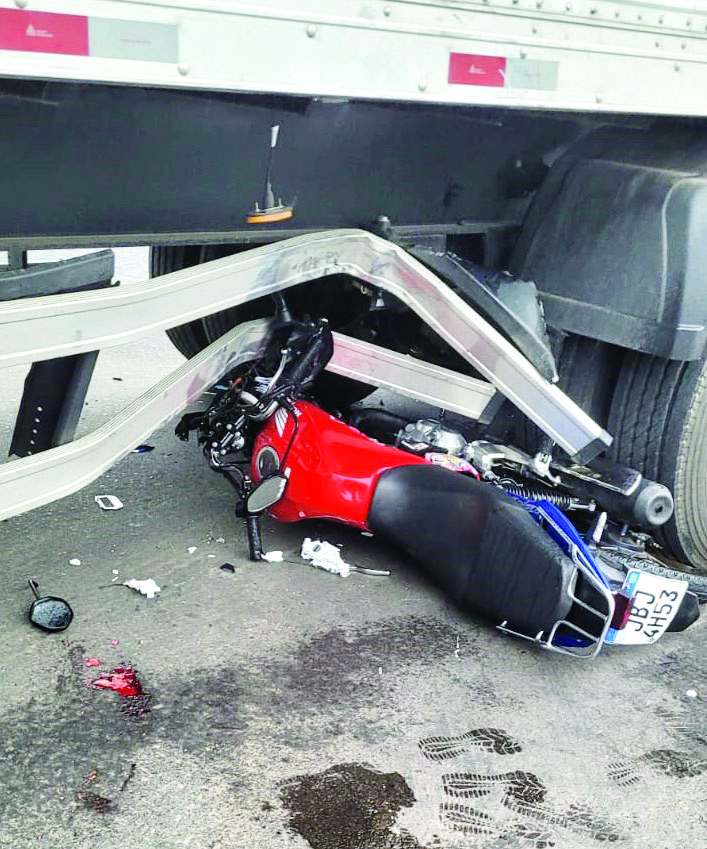 O rapaz dirigia no sentido Centro-Saiqui quando um caminhão, que saia da rua Perimetral para fazer a conversão em direção a Canela, entrava na rodovia. Santos não conseguiu evitar o choque e bateu na lateral do veículo de grande porte, atingindo a proteção lateral, entre o engate e as rodas traseiras da carreta. Essa proteção é feita de metal e é um sistema de segurança obrigatório em alguns caminhões. Ainda assim, a moto parou embaixo do caminhão, em frente aos pneus.