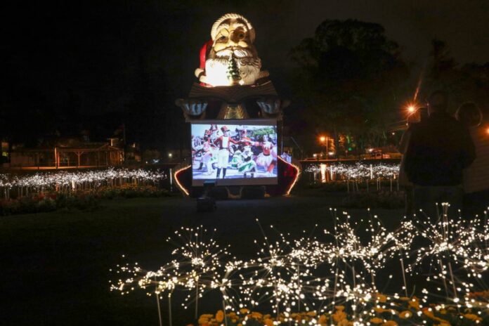 GRAMADO – O Lago Joaquina Rita Bier recebe uma atração especial durante o 40° Natal Luz de Gramado: um cinema ao ar livre que exibe diariamente o documentário “Luz, Magia e Emoção: uma jornada de 40 anos de Natal”. A exibição ocorre das 20h às 22h, em looping, proporcionando ao público uma imersão na história do maior evento natalino do Brasil. Toda a estrutura montada na ilha do lago é abastecida por energia solar, reforçando o compromisso do Natal Luz com práticas responsáveis. O espaço foi preparado pela empresa Eporth, a convite da stager Claudya Chanas.