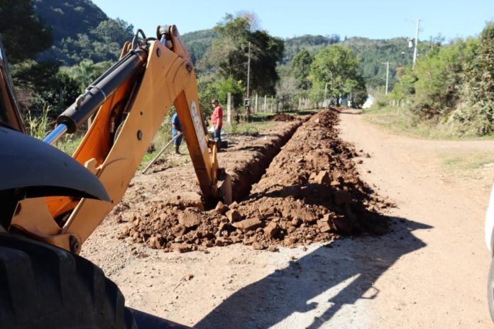 GRAMADO – A Secretaria da Agricultura trabalha na instalação da rede de distribuição de água para 34 famílias da localidade da Linha Furna, interior do município. Ao todo, serão instalados cerca de 2 quilômetros de tubulação, que distribuirá a água de um poço artesiano perfurado pela Secretaria Estadual de Agricultura, Pecuária e Desenvolvimento Rural através de um termo de cooperação com a Secretaria da Agricultura.
