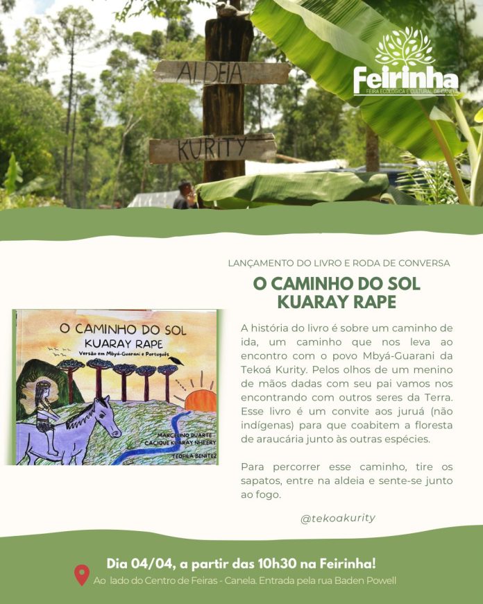 CANELA – A Feira Ecológica e Cultural de Canela (Feirinha) recebe, no próximo sábado (4), a partir das 10h30, o lançamento do livro O Caminho do Sol – Kuaray Rape, seguido de uma roda de conversa aberta ao público. O evento acontece ao lado do Centro de Feiras, com acesso pela Rua Baden Powell.