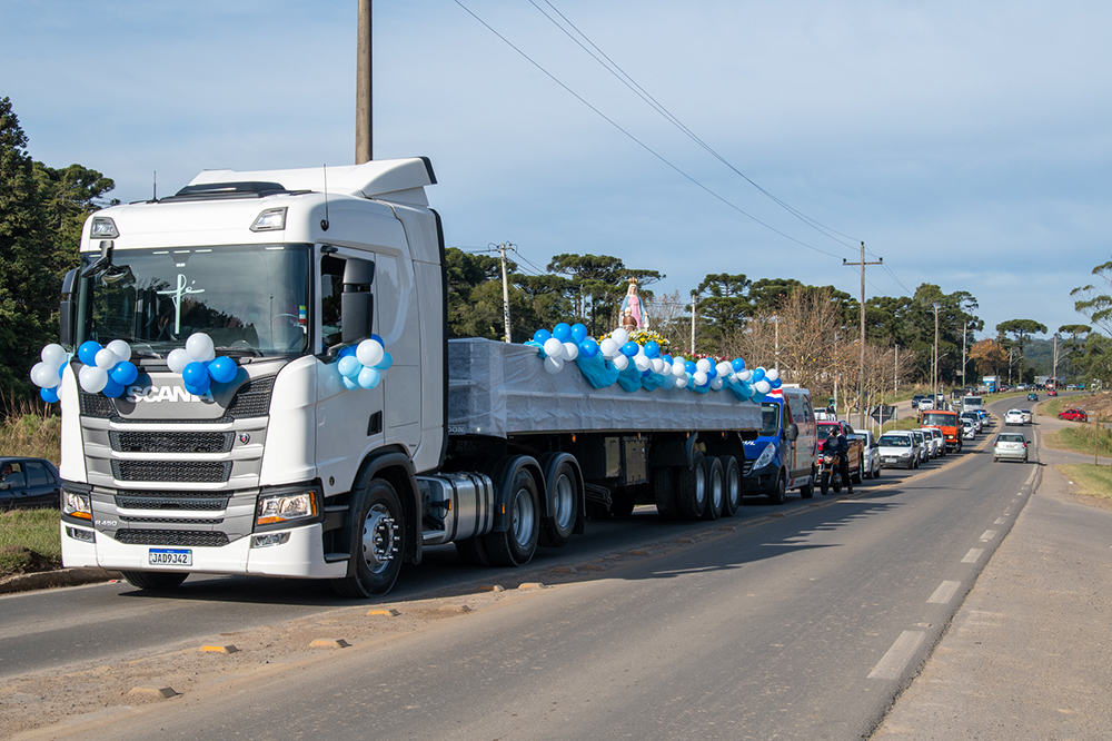 CANELA – No final de semana passado, devotos de Nossa Senhora de Caravaggio de diversas cidades da região estiveram em Canela para renovar a fé na Santíssima. No sábado (21), aconteceu a Jornada Diocesana da Juventude, que reuniu dezenas de grupos de jovens católicos, e no domingo (22), a tradicional Romaria Motorizada, que trouxe centenas de caminhões, motocicletas e carros de passeio para o Santuário.