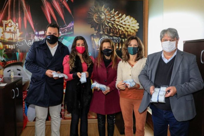 GRAMADO – A Gramadotur, Autarquia Municipal, fez a entrega ao Gabinete da Primeira Dama do lote de ingressos para o espetáculo de abertura do 36º Natal Luz de Gramado. Foram disponibilizados 1.810 ingressos que serão trocados cada um por dois quilos de alimento não perecível por pessoa.