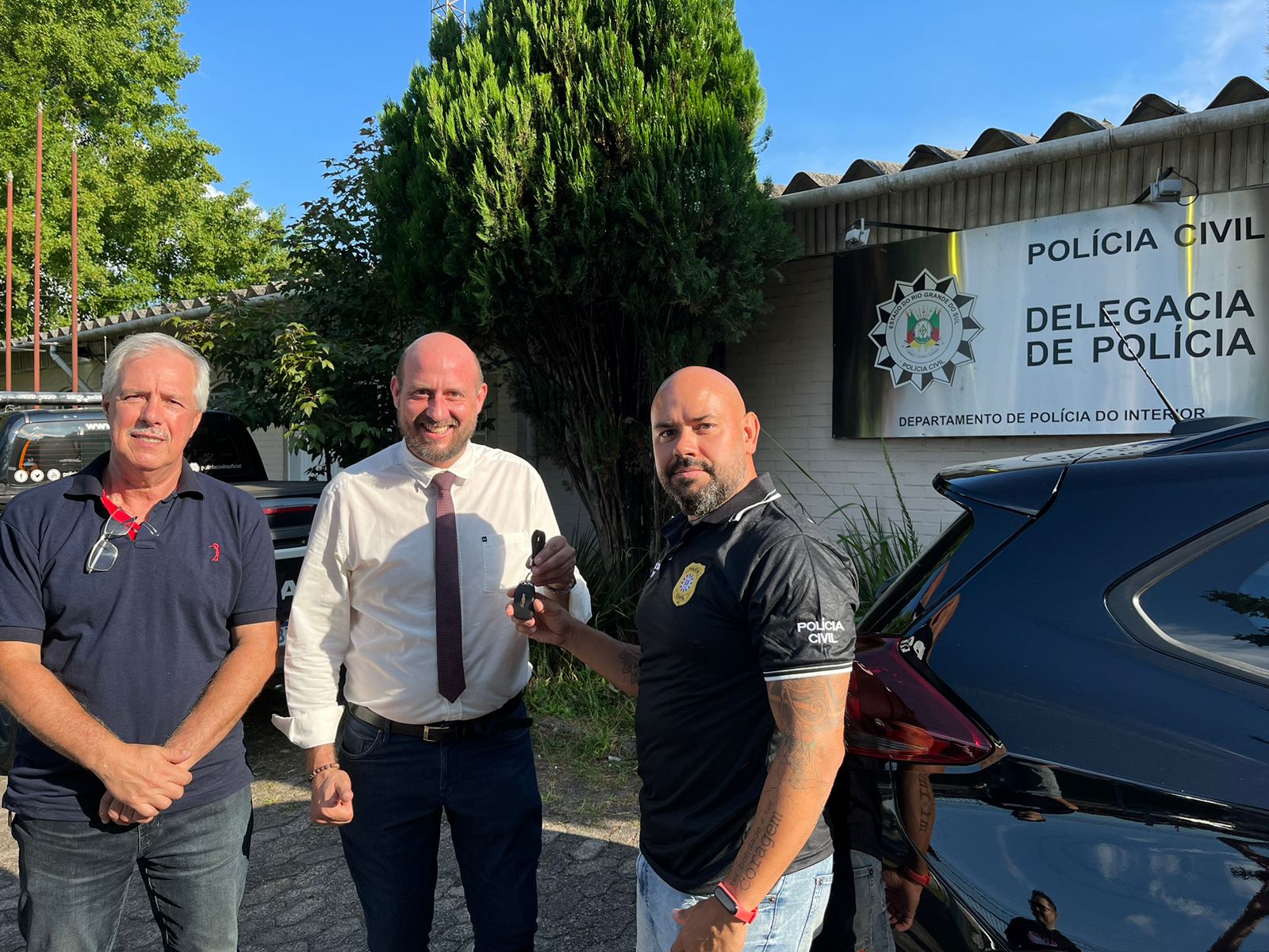 CANELA – O Vereador Jerônimo Terra Rolim (PDT) entregou na tarde desta quarta-feira (01), para o Delegado Vladimir Medeiros, as chaves de uma nova viatura do tipo discreta, sem identificação, para uso no trabalho da investigação policial.