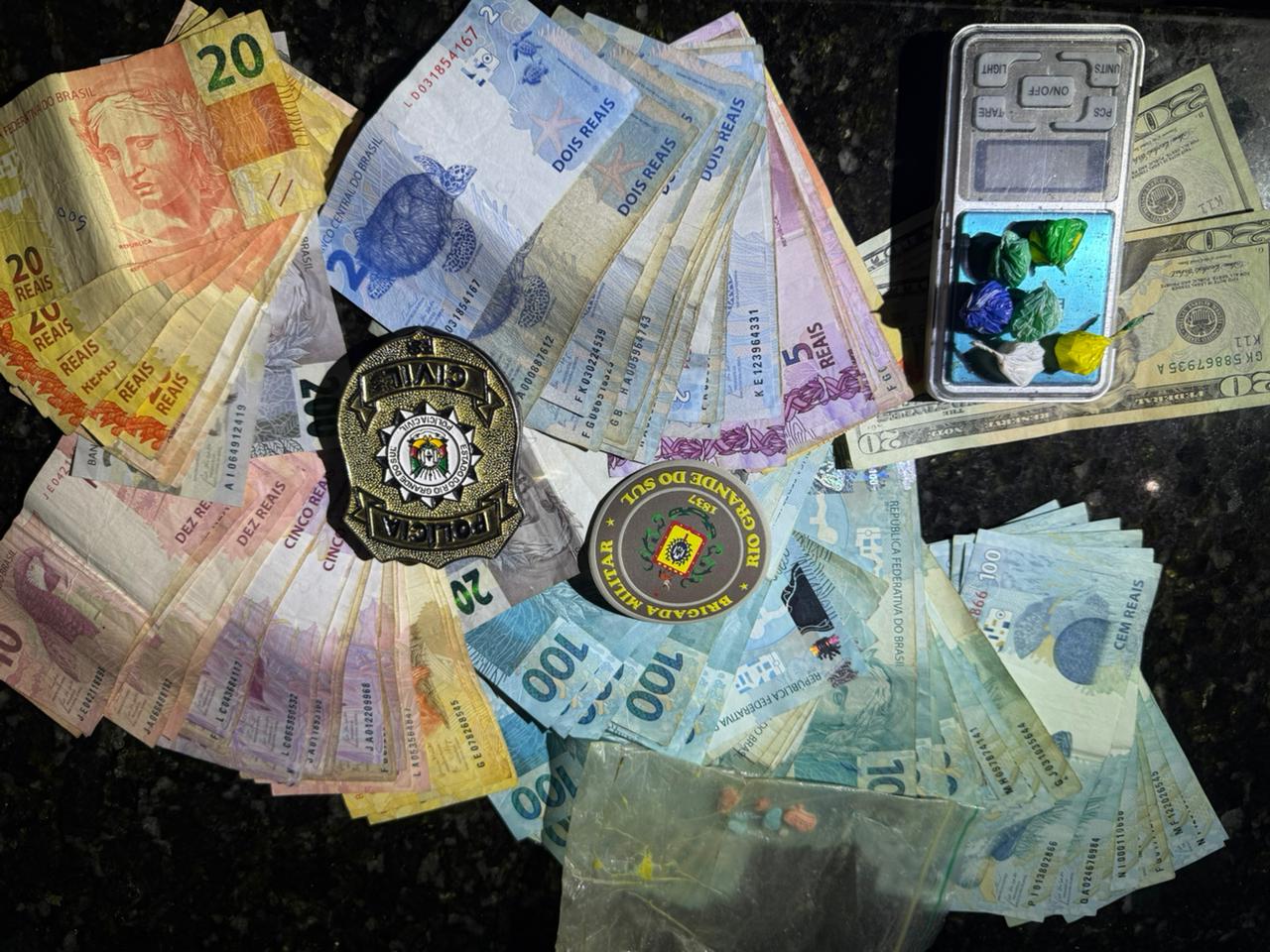 Durante a ação, foram cumpridas buscas em estabelecimentos comerciais e residências suspeitas. Como resultado, os policiais apreenderam porções de cocaína, maconha e drogas sintéticas, além de uma balança de precisão utilizada para a pesagem dos entorpecentes. Também foram recolhidos aproximadamente R$ 5.000,00 em dinheiro.