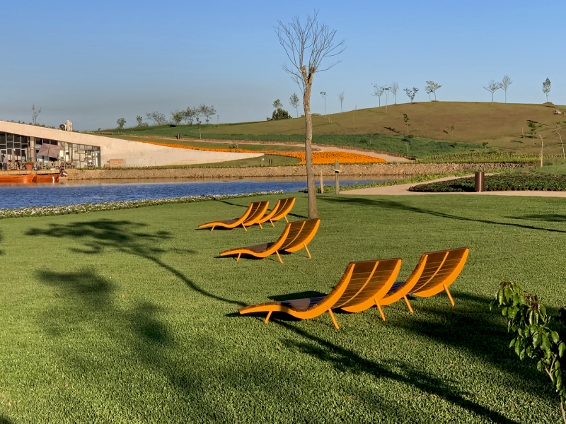 Jardim de brincar – apresenta o “Balanço Tempo”, e a escultura “Deslocamento”, feita a partir de uma modificação da terra.