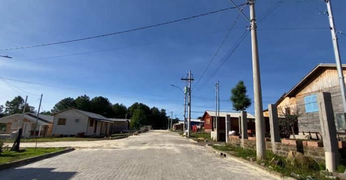Os 3.200m² de calçamento das vias foram feitos com bloquetos de concreto, com investimento aproximado de R$ 230.400,00 entre material e mão de obra.