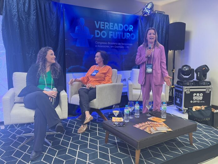 No último painel desta sexta-feira (27), a diretora do Jornal Integração, Ivanir Scherer, e as vereadoras Carla Reis (MDB), de Canela, e Ivete Lucilo (PP), de São Domingos do Sul, compartilharam suas perspectivas sobre a política como um meio efetivo de promover mudanças e atender às demandas da comunidade.