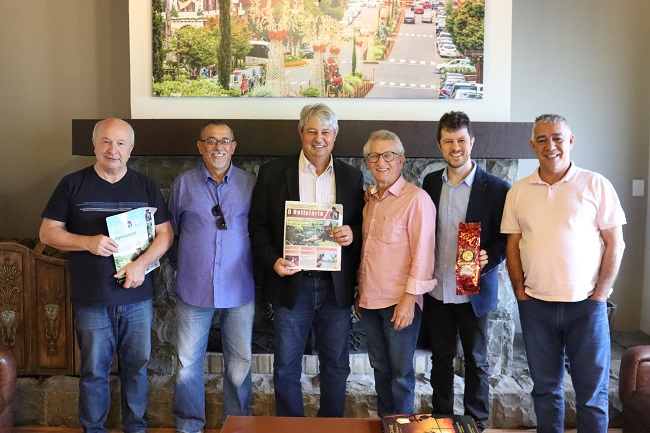 GRAMADO – Na última sexta-feira (27) os representantes de portais de comunicação da Região Serrana do Espírito Santo, Luiz Ximenes, Itamar Gurgel, Julio Huber e Eci Scardini, estiveram no gabinete do prefeito Nestor Tissot e vice Luia Barbacovi para conversar sobre o desenvolvimento do turismo em Gramado.