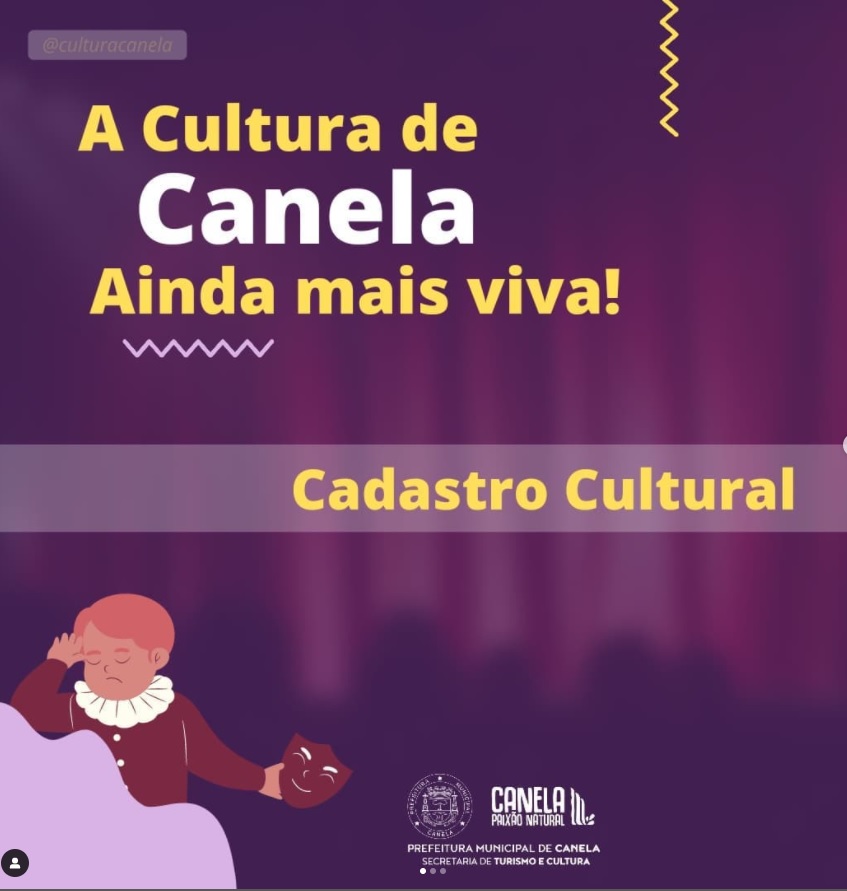 Para ser incluído no cadastro, o artista deve preencher uma ficha com informações essenciais (www.canela.com.br/cadastro-da-cultura). O prazo para inscrições segue até o dia 27 de fevereiro.