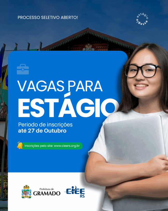 GRAMADO – A Prefeitura de Gramado, em conjunto com o Centro de Integração Empresa Escola (CIEE/RS), anuncia a abertura do Processo Seletivo Público Nº 03/2025 para a contratação de estagiários. O processo seletivo visa preencher vagas existentes e formar cadastro de reserva para estudantes de níveis Médio e Superior.