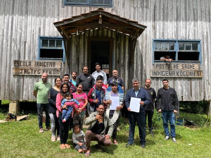 A Administração Municipal de Canela, representada pelo prefeito em Exercício, Jefferson de Oliveira, pelo secretário de Trânsito, Transporte e Fiscalização, Alziro Daros, pelo assessor jurídico da pasta, Artur Velho, pelo chefe do Departamento de Fiscalização, Diego Augusto Schuck e pelo fiscal Alcione Althaus, esteve na manhã de quinta-feira (25) na aldeia kaingang, junto a Flona – Floresta Nacional de Canela, para oficializar um acordo com as lideranças indígenas visando a regularização do comércio de produtos por parte dos povos originários. Na ocasião, foi assinado um Termo de Acordo e Cooperação envolvendo a comunidade indígena de Canela e a Prefeitura Municipal, com acompanhamento do MPF – Ministério Público Federal e da Funai – Fundação Nacional dos Povos Indígenas, ‘a fim de que sejam adotadas as medidas para manutenção da cultura indígena e a regularização do comércio de artesanato indígena’.