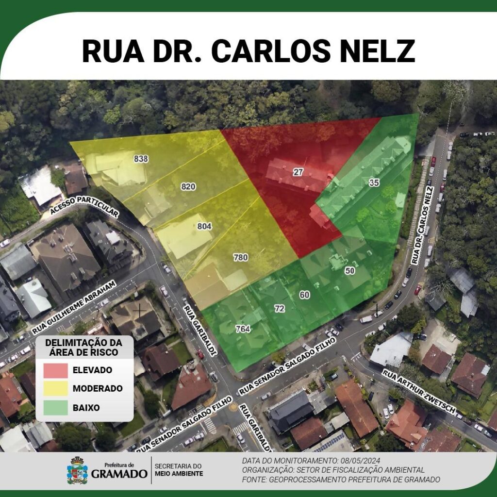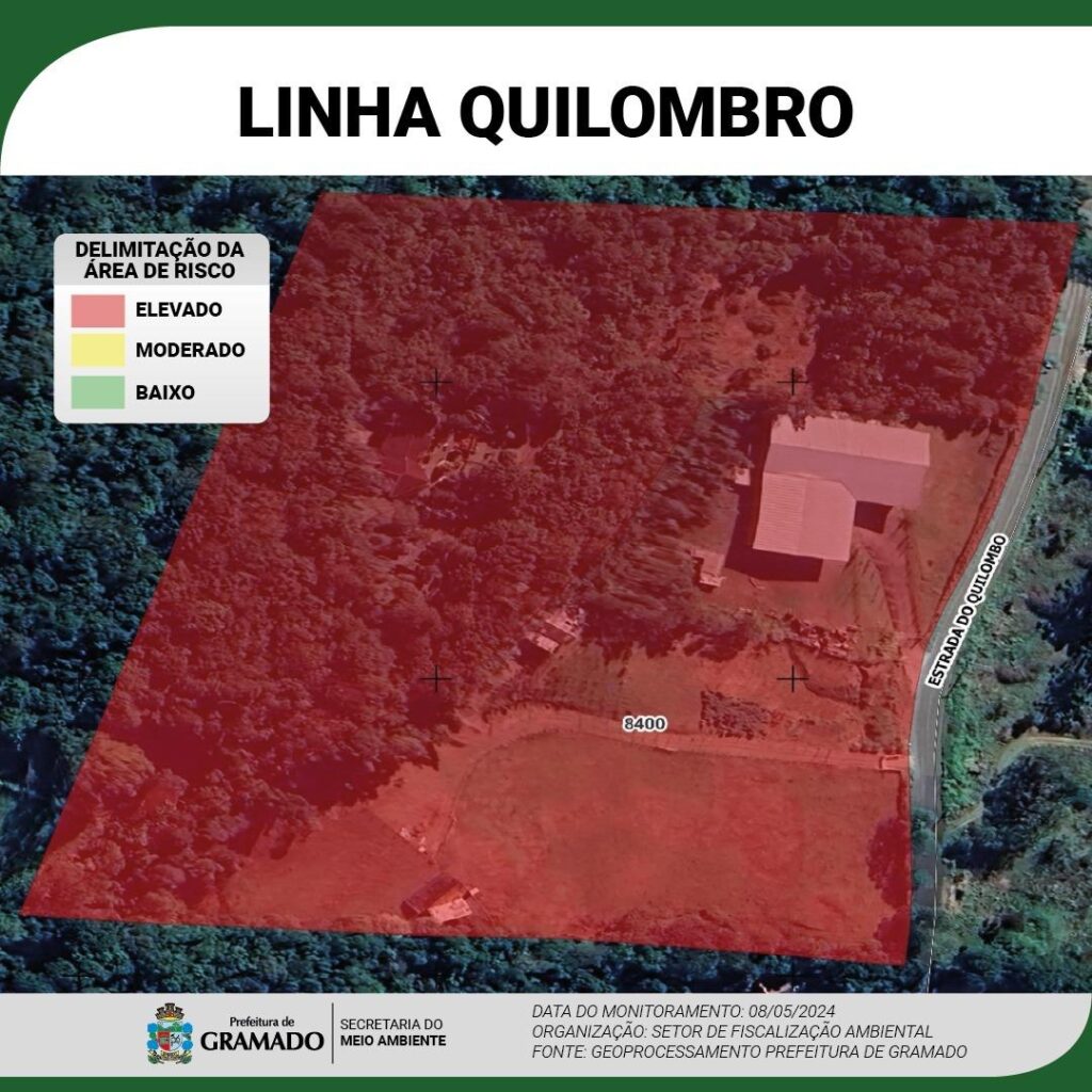 🔴 ÁREA VERMELHA – Risco Elevado: moradores devem evacuar imediatamente as residências, sem possibilidade de acesso as estruturas em virtude do risco iminente de colapso.
