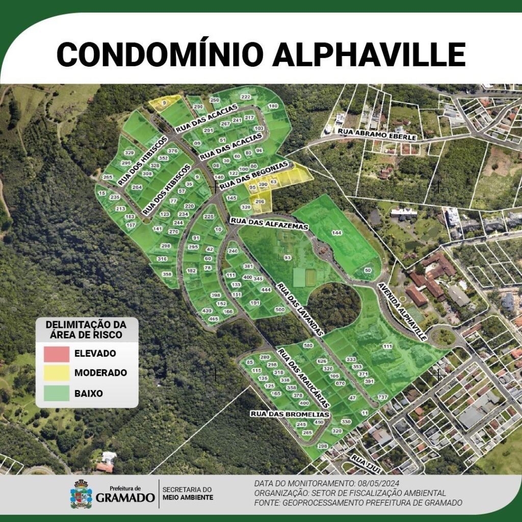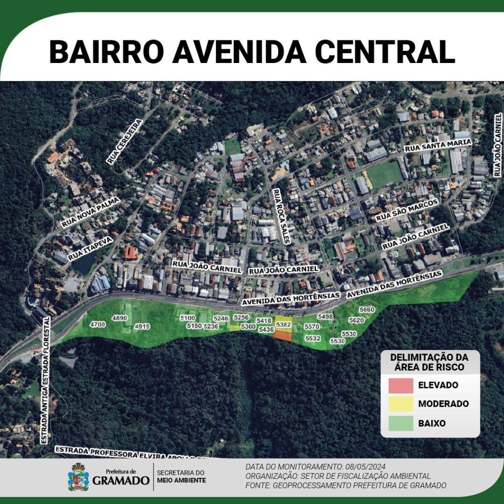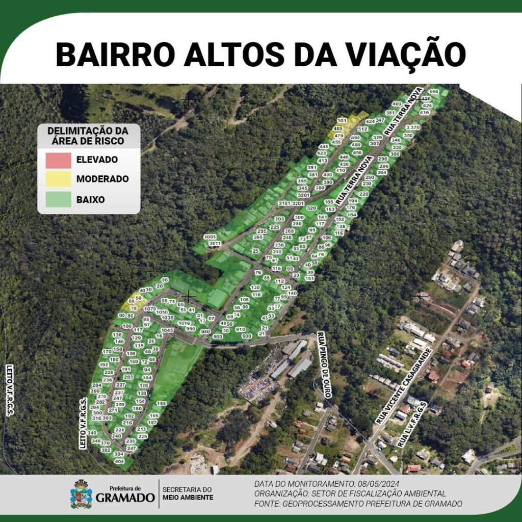 🟢 ÁREA VERDE – Risco Baixo: qualquer registro de alteração no solo durante os monitoramentos, moradores serão alertados pelas equipes da Defesa Civil Municipal.