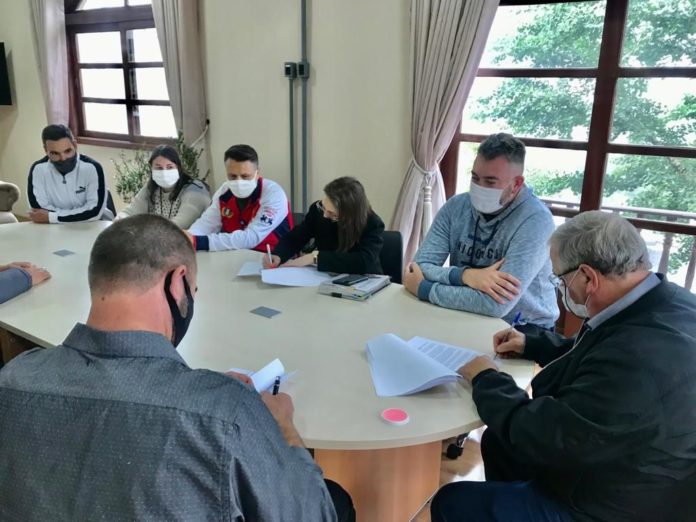 CANELA – Na tarde desta quinta-feira (18), o prefeito Constantino Orsolin, acompanhado pela secretária de Educação, Janete Oliveira da Silva Santos, pelo secretário de Obras, Marcelo Savi, pelo secretário da Fazenda e Desenvolvimento Econômico, Luciano Melo e pelo secretário de Governança, Álvaro Grulke, assinou um contrato de promessa de compra e venda de imóveis por meio de permuta por área construída, que possibilitará a construção da nova sede da Escola Municipal de Educação Infantil Adalberto Wortmann, popularmente conhecida como Creche Tio Beto, localizada no bairro Canelinha. Também participaram do ato o empresário Márcio Vandir Colombo e o engenheiro Anderson Zimmermann.
