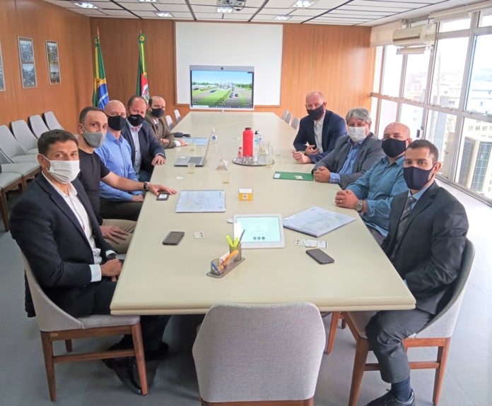 GRAMADO – Na sexta-feira (15), o prefeito, Nestor Tissot acompanhado do presidente da Câmara de Vereadores, vereador Professor Daniel, esteve no Centro Administrativo Fernando Ferrari, em Porto Alegre para tratar de melhorias nos acessos à Gramado. Na ocasião, o promotor de Justiça, Dr. Max Guazzelli e os empresários Josué Neumann Spengler, Gustavo Fucks, Dirlei Swaizer e o Engenheiro Neocir Martins, representando a Associação Vale das Montanhas acompanharam uma reunião com o secretário extraordinário de Parcerias do RS, Leonardo Busatto.