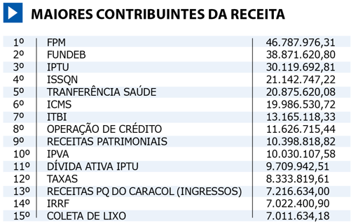 O orçamento deste ano é de R$ 290.900.000,00. Os três principais contribuintes para a receita são o Fundo de Participação Municipal, o Fundeb e o IPTU.