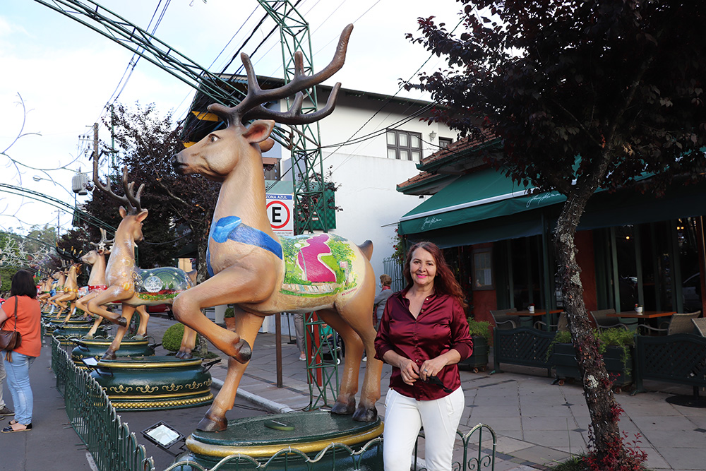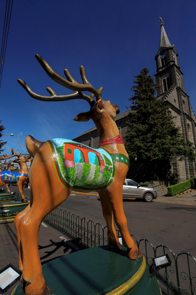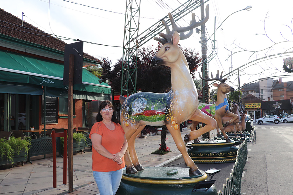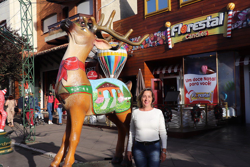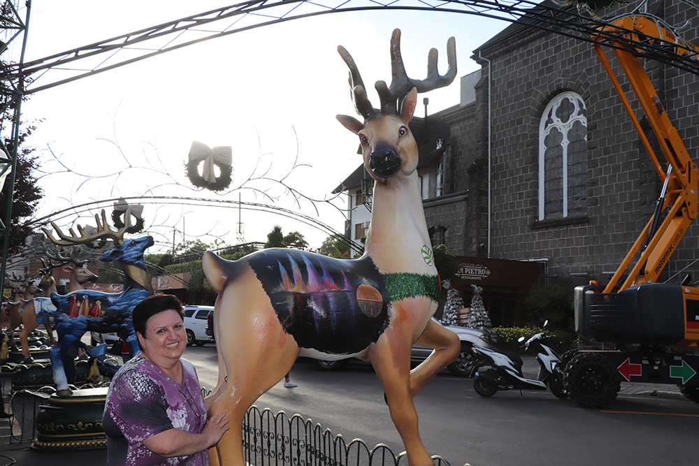 GRAMADO – Diversos pontos turísticos em um lugar só. Neste ano, as Renas do Natal Luz estão caracterizadas com os principais lugares visitados pelos turistas no município, como a Igreja São Pedro, o Pórtico da Várzea Grande, a Rua Torta, o Lago Joaquina Rita Bier, entre outros. Tradicionalmente, a Gramadotur, por meio de uma licitação, escolhe artistas interessados em realizar as obras todos os anos e, como de costume, há sete anos, as pintoras e desenhistas da Associação Cultural Artes Visuais de Gramado (ACAVG), agremiação criada especificamente para a arte nas Renas, foram escolhidas para expor seus talentos.