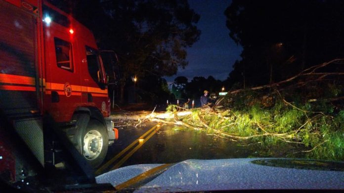 Os bombeiros contaram com a ajuda de motoristas que estavam na rodovia para fazer a remoção da árvore.