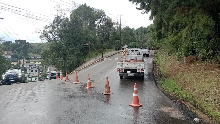 Foto: Prefeitura de Gramado/Divulgação – Trecho está sinalizado e equipes estão trabalhando no local