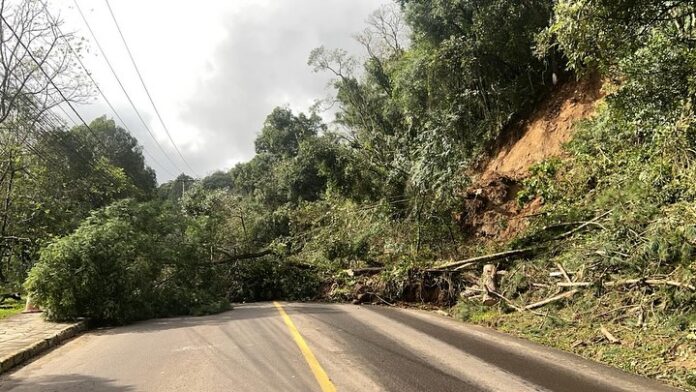 Foto: Prefeitura de Gramado/Divulgação – Trecho está sinalizado e equipes estão trabalhando no local
