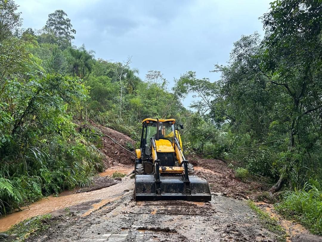 As fortes chuvas bloquearam várias estradas no interior do município! Nossas equipes de Trânsito e Obras estão trabalhando para liberar as vias. Por enquanto, seguem bloqueadas: