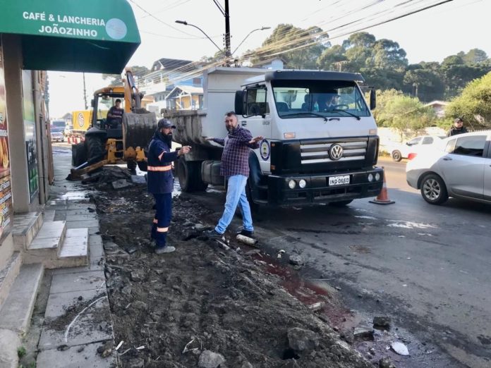 O secretário de Obras, Marcelo Savi, acompanha os trabalhos e projeta que os serviços devem seguir até o final desta semana. “É uma obra complexa por tratar-se de uma rede muito antiga! Vamos ter que substituir a canalização e mexer nas calçadas que também foram danificadas”, explica Savi.