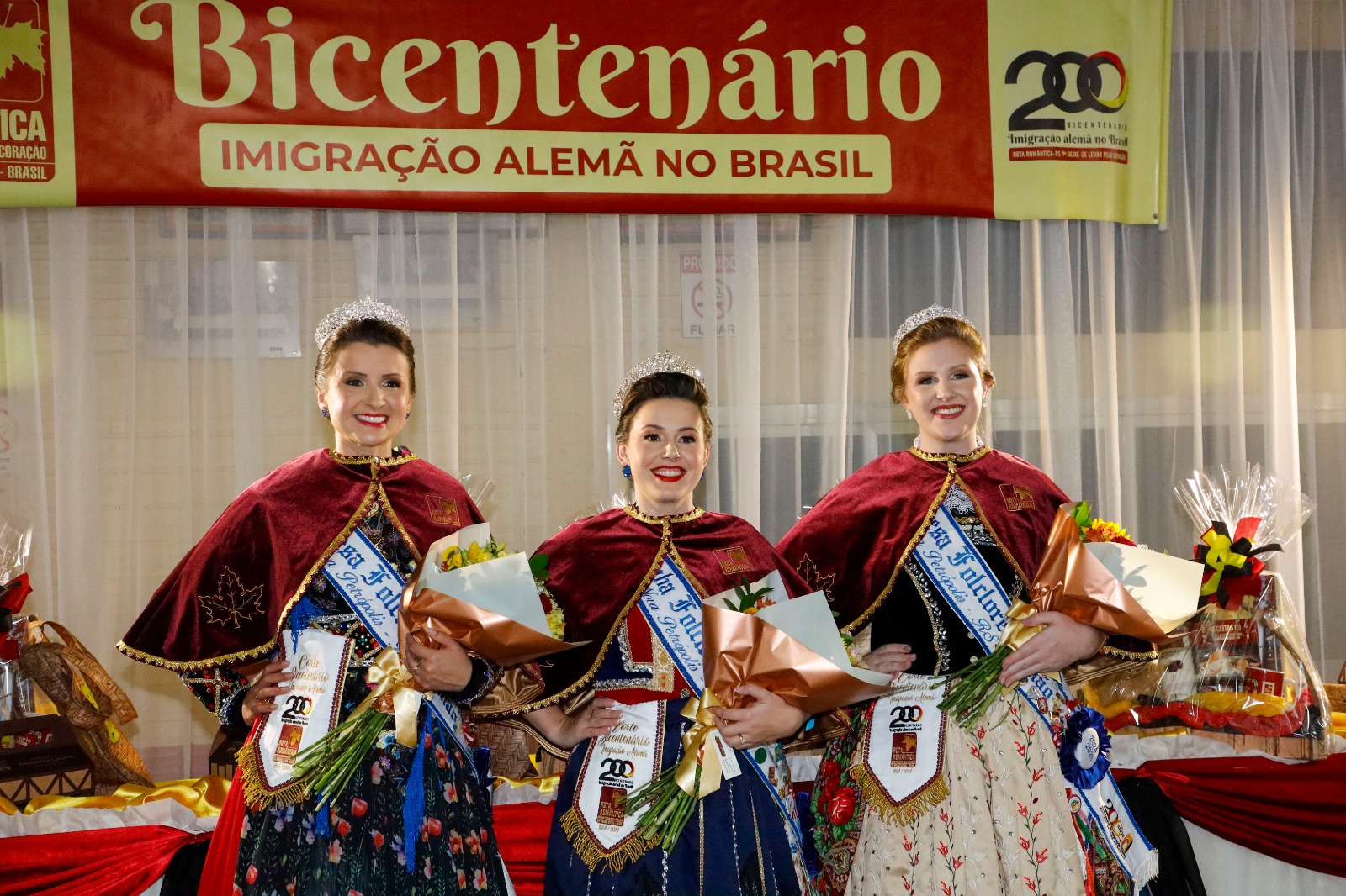 E a Corte escolhida pelos jurados foram as Soberanas do Festival do Folclore Alemão de Nova Petrópolis, a rainha Ana Luiza Kuhn, a 1ª princesa Marluce Maldaner e a 2ª princesa Camila Caroline Schwaab.