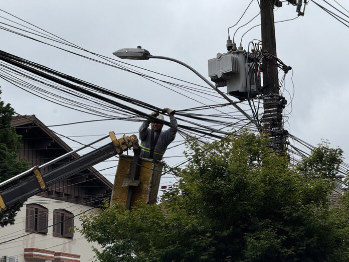 Nesta terça-feira (28), as Secretarias de Governança, Obras e Trânsito, em parceria com as empresas Claro, Adyl Telecom, RBT, G2, Voa, Exa e RGE, realizaram a segunda etapa da remoção de cabos e fios inutilizados dos postes da Rua São Pedro. A ação, que contemplou o trecho entre o Mercado Berti e o Serra Grill, faz parte de um esforço conjunto para melhorar a paisagem urbana, além de garantir a segurança e o bom uso do espaço público.