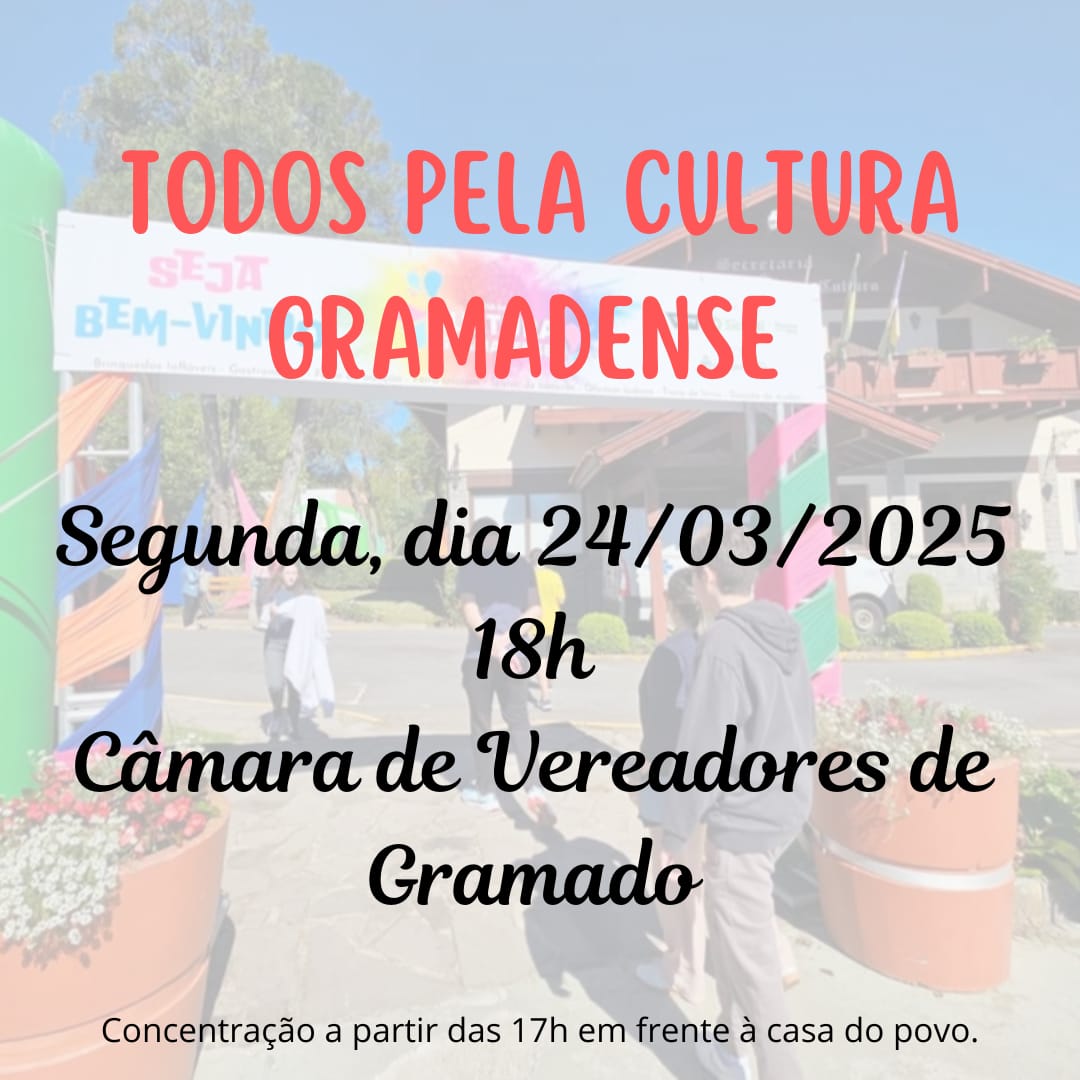Nesta segunda-feira, 24 de março, o Coletivo de Cultura Gramadense fará uso da Tribuna do Povo na Câmara de Vereadores de Gramado para apresentar uma carta aberta à comunidade e ao poder público. O documento expressa a preocupação de artistas, produtores, agentes culturais e cidadãos com o atual cenário das políticas culturais no município.