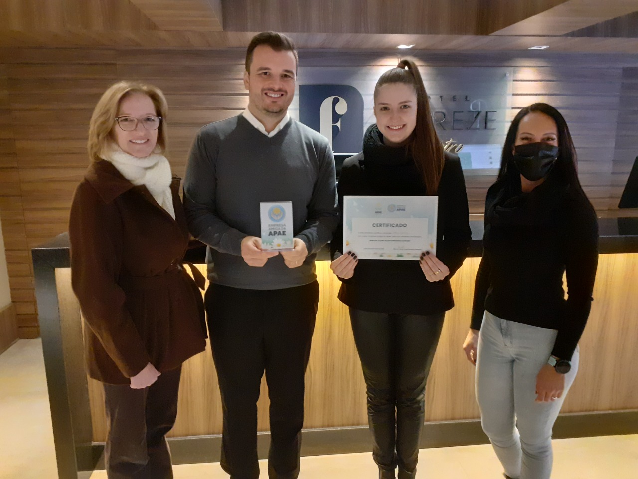 GRAMADO – Lançado com o objetivo de zerar a fila de espera por atendimentos clínicos na instituição, o Selo Empresa Amiga da APAE Gramado teve os três primeiros contratos assinados recentemente. As empresas que aderiram já receberam o material e o certificado que simboliza a parceria. Já foram oficializadas as parcerias com o Armazém 845, com a rede de Hotéis Fioreze e com o Supermercado Brombatti.