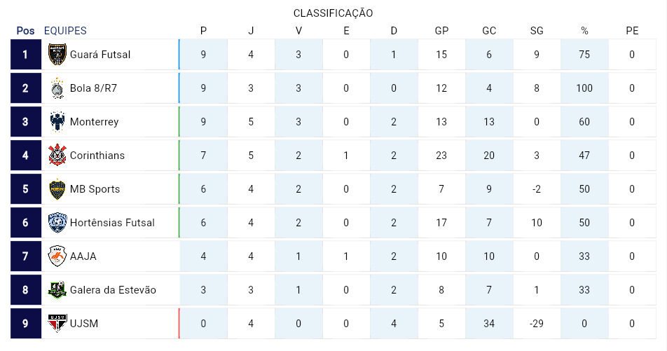 Pelo Campeonato Municipal de Futsal Série Ouro, as redes balançaram bastante na noite de ontem, segunda-feira (20). No primeiro confronto da rodada, o Monterrey venceu o JA por 5 a 4, em uma partida disputada gol a gol até os minutos finais. Logo em seguida, o Corinthians aplicou uma goleada sobre o UJSM, vencendo por 11 a 4. A equipe alvinegra confirmou o favoritismo e mostrou um ataque avassalador, mantendo-se entre os líderes da competição.