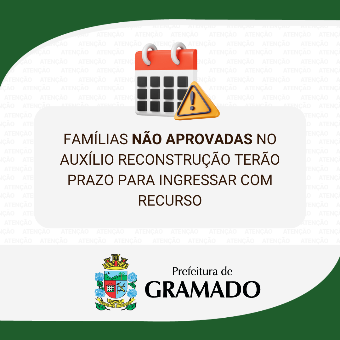 O Governo Federal abre nessa segunda-feira (04) a possibilidade das famílias não aprovadas no Auxílio Reconstrução a ingressarem com recurso administrativo.